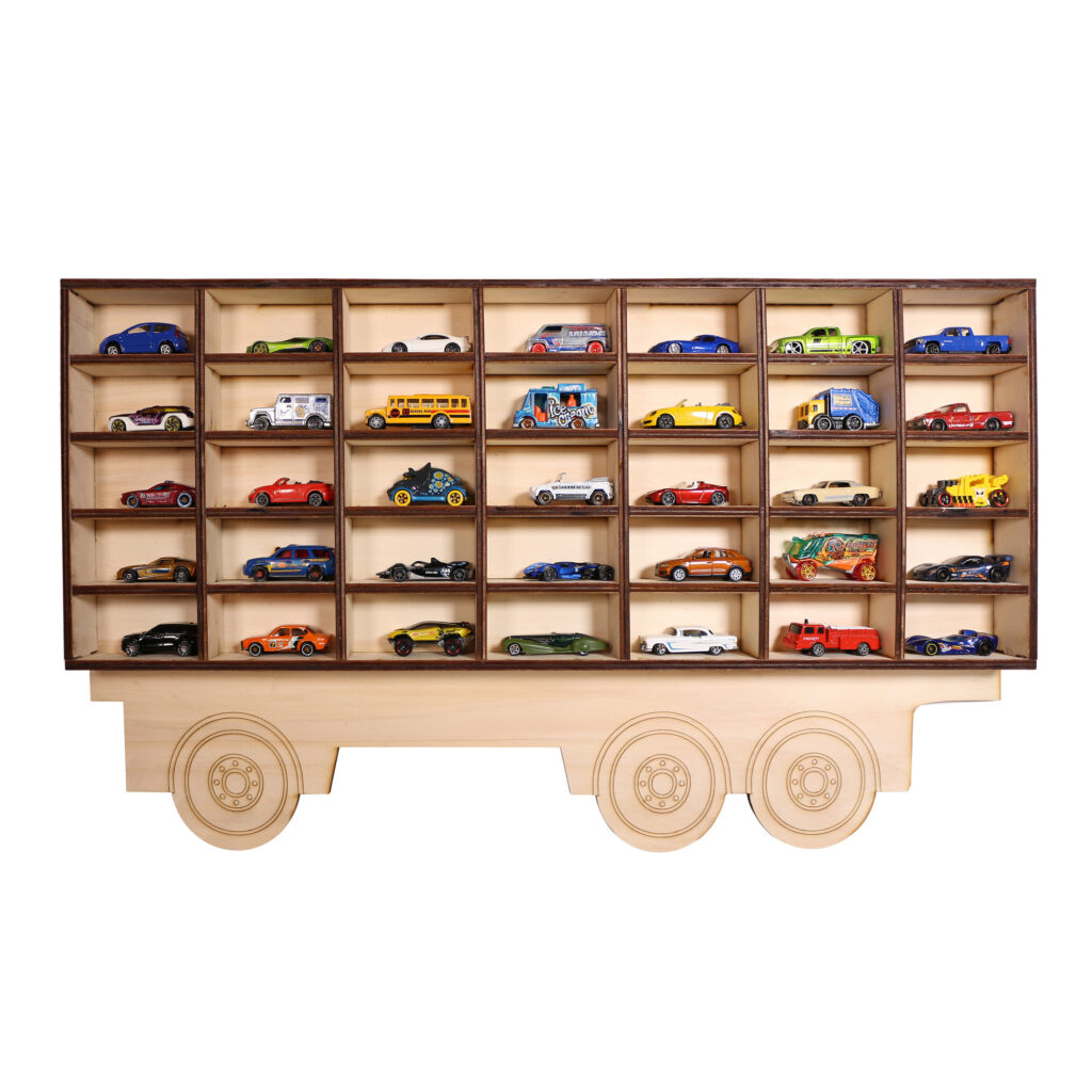 Copilul tau este pasionat de masinute? Ei bine, avem solutia perfecta. Micutul va fi incantat sa incarce si sa descarce tirul fara ajutor, dezvoltand astfel obiceiuri ordonate, abilitati de organizare, sortare, numerotare si creativitate. De asemenea, un alt beneficiu, de data aceasta mai mult pentru dvs., este faptul ca scapati de sentimentul dureros al picioarelor goale care calca pe masinutele lasate pe podea de catre copil. Prin urmare, va oferim un cadou ideal pentru micul colectionar de masinute: util si cu un decor deosebit, asezat perfect in camera copilului.