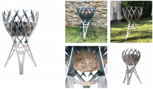 Fire pit-ul este compus din doua parti principale: cadrul metalic si vasul de foc. Cadrul este taiat cu laser dintr-un metal gros de 8mm.