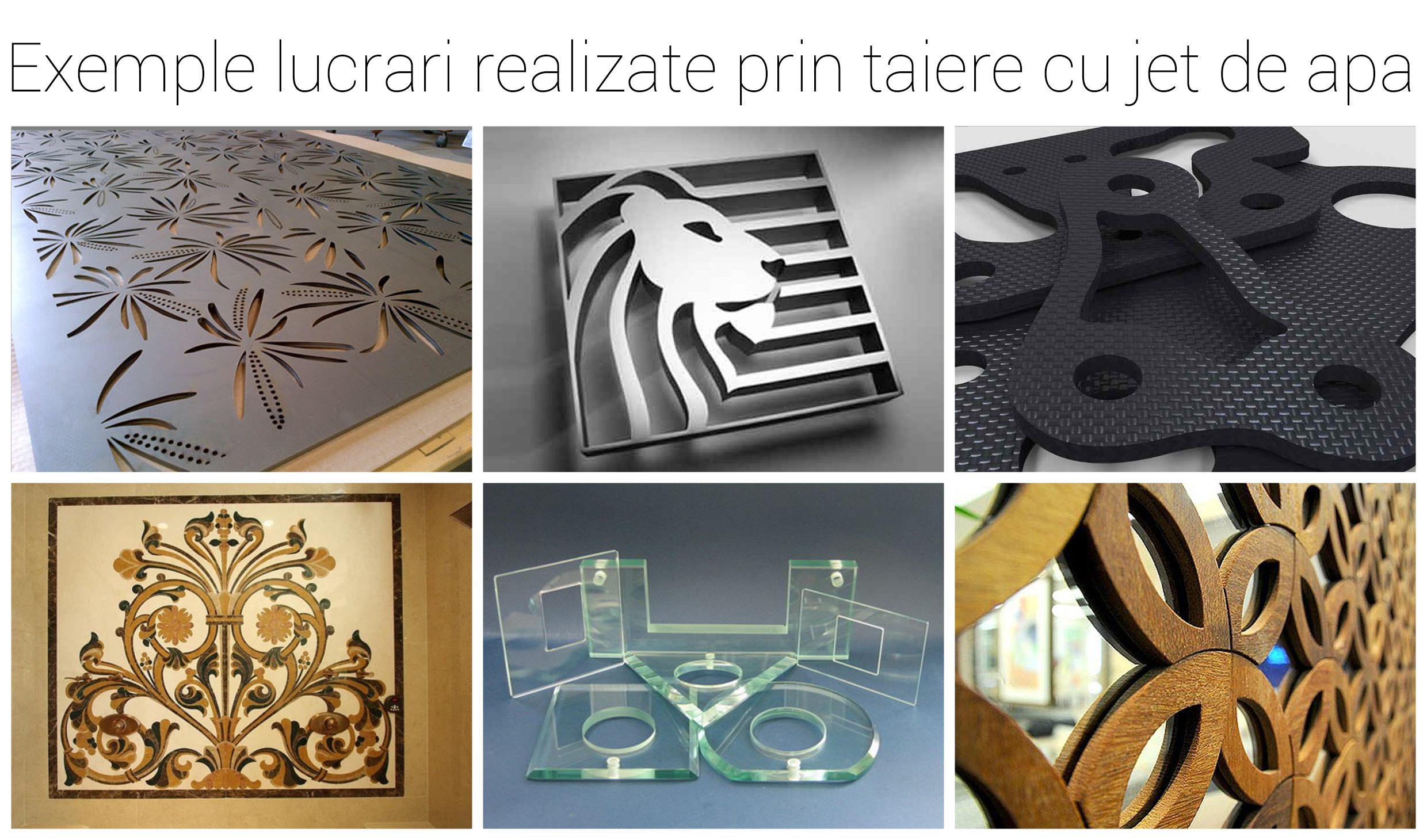 Octaser executa debitari cu jet de apa pentru ornamente din piatra naturala si compozit, faianta, gresie, plastic, cauciuc, sticla cat si metale feroase si neferoase si alte materiale. Sunt folosite tehnologii de ultima generatie.